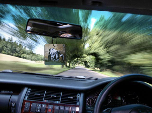 Car air freshener showcasing some of Banksy’s modern street art.