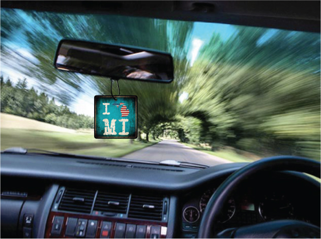 Show love for your state and hang one of these in your vehicle, available in a range of fragrances.