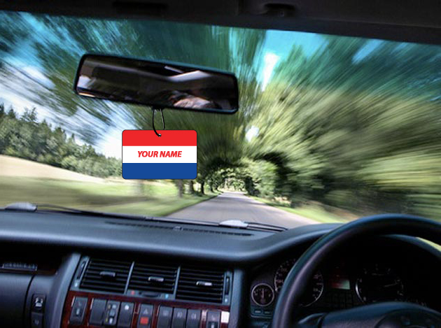This air freshener is personalised with your name or message making it unique.