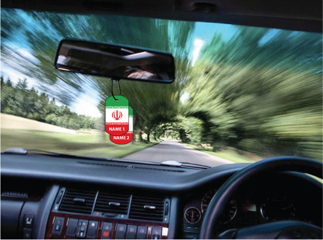 This novelty dog tag car air freshener is personalised with your name/s.