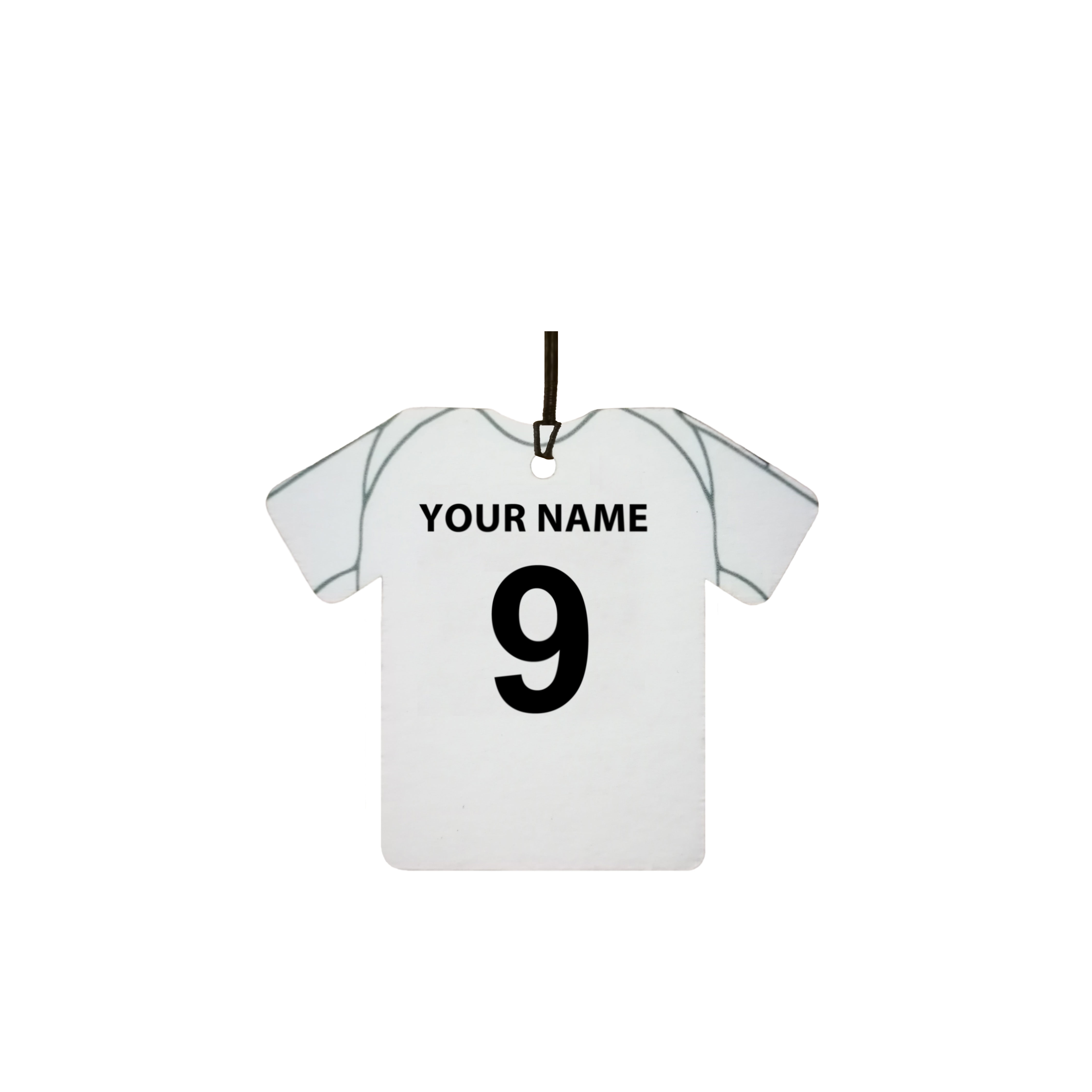 This is a personalised football shirt car air freshener. Ideal as a gift for any fan.