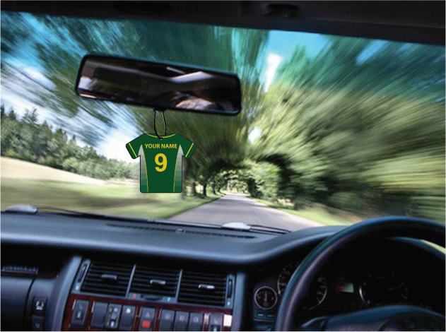 This is a personalised shirt car air freshener. Ideal as a gift.