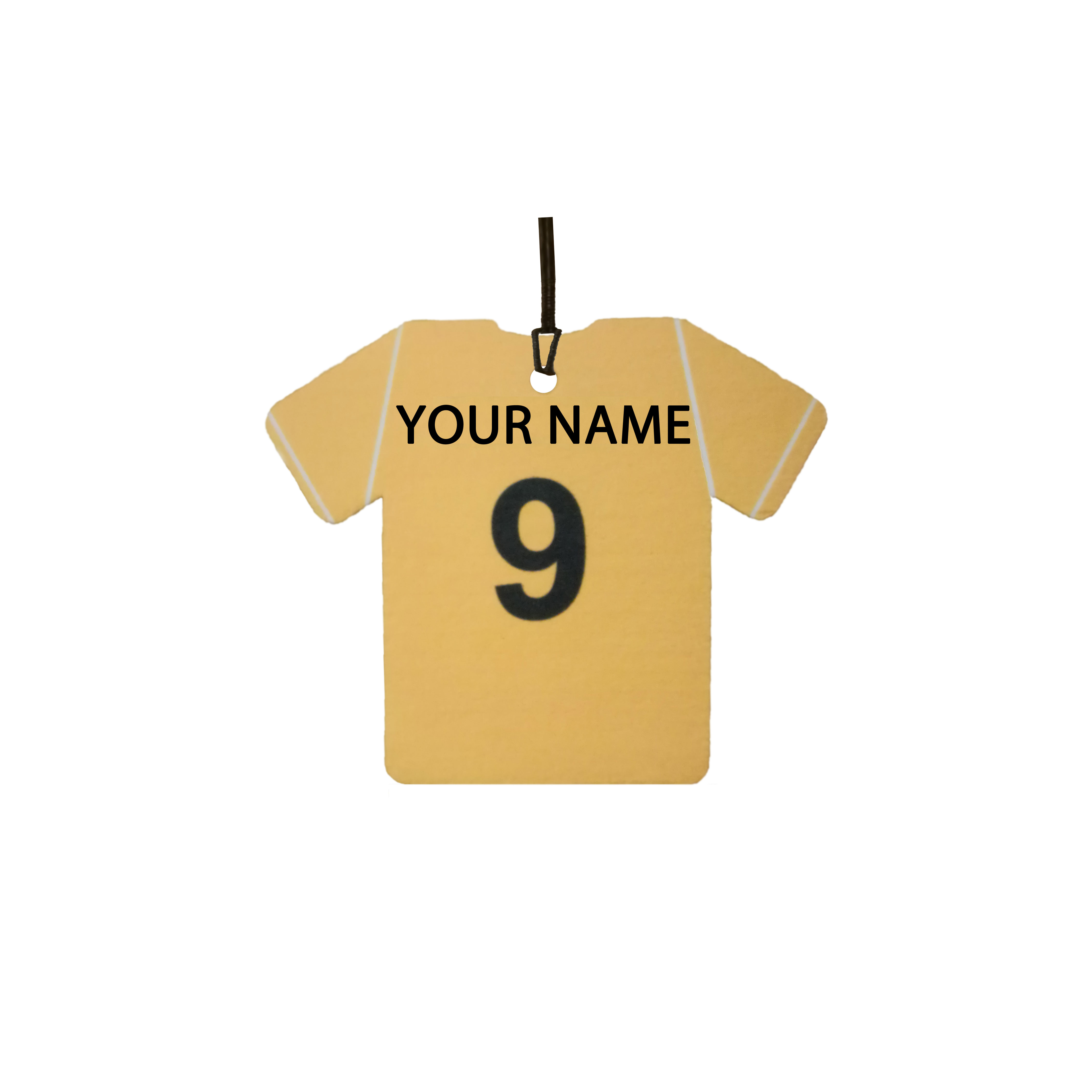 This is a personalised football shirt car air freshener. Ideal as a gift for any fan.