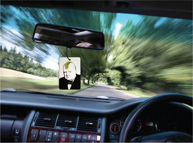 Car air freshener showcasing some of Banksy’s modern street art.